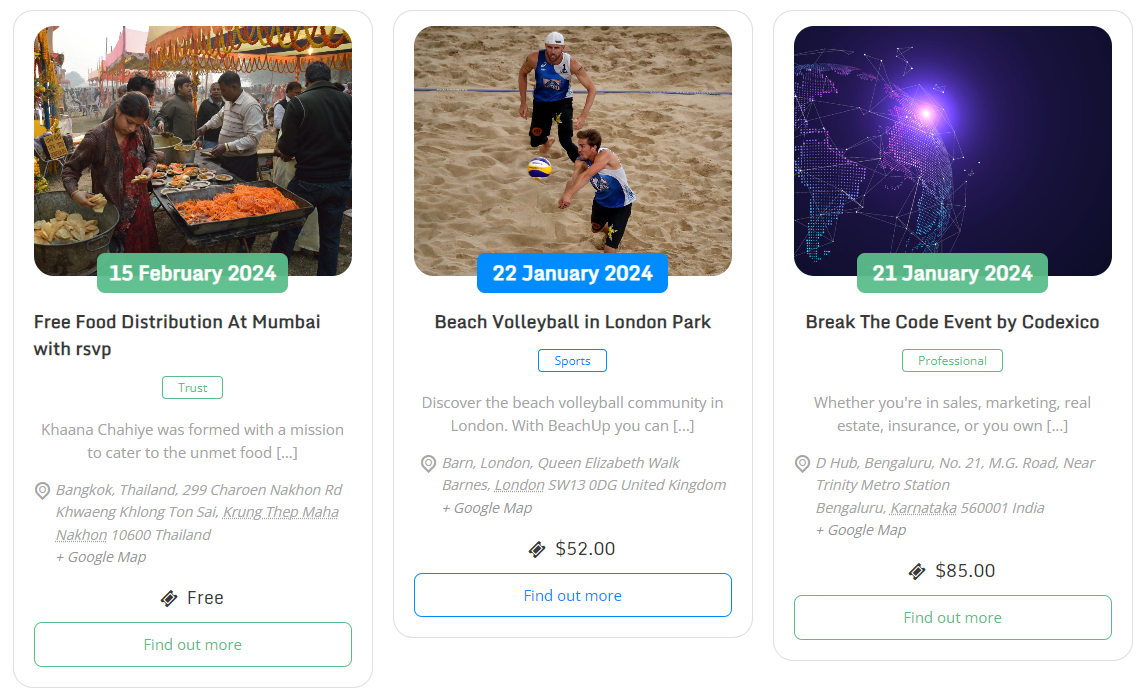 Events Shortcodes pro gives you a variety of templates in which you can easily showcase your events on any post or page.