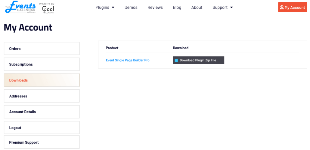 Or simply visit – https://www.eventscalendaraddons.com/my-account/downloads/ & download the zip of your purchased plugin.