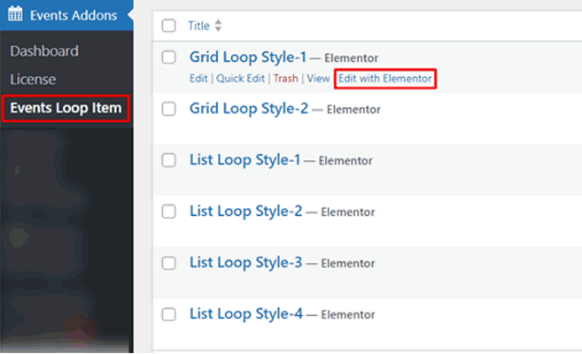 • Go To >> Dashboard >> Events Addons >> Event Loop Item.