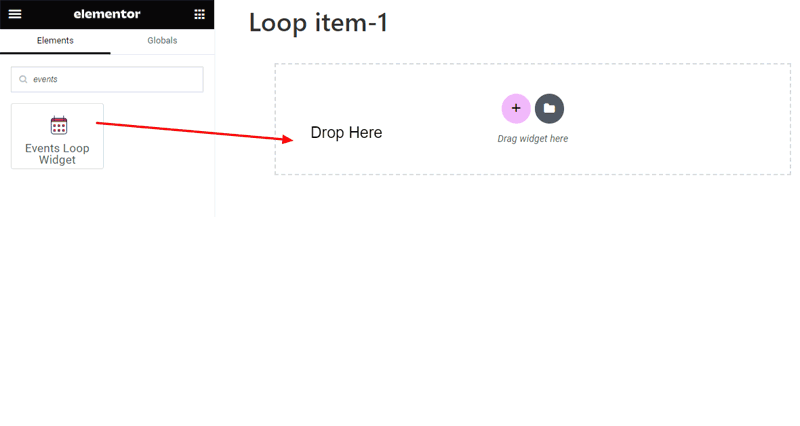 • From the Search panel on the Left side >> Search and select ‘Events Loop Widget’