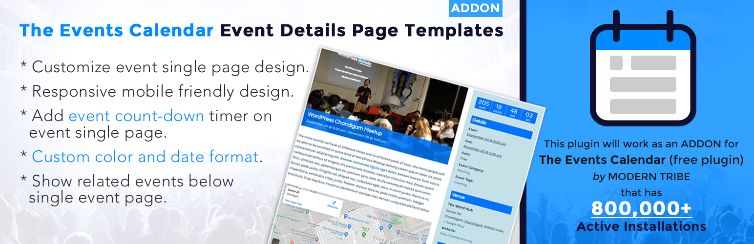 Event Single Page Templates Addon helps you to extend single event page design limitations of The Events Calendar.